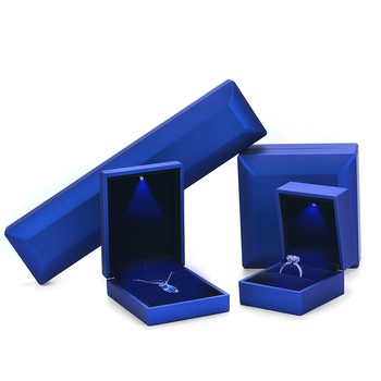 Cajas colgantes de pendiente de anillo personalizadas de plástico con luz led, nuevos productos, moda 2019